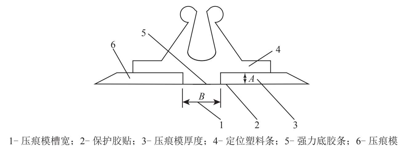 压痕模为自粘式压痕模的重要部分,用于完成承印物的压痕功能;定位塑料条用于压痕模的定位;强力底胶条主要功能是将压痕模粘贴于模压底版上;保护胶贴主要是用来保护底胶,防止在日常运输和保存中损坏和失去黏性。