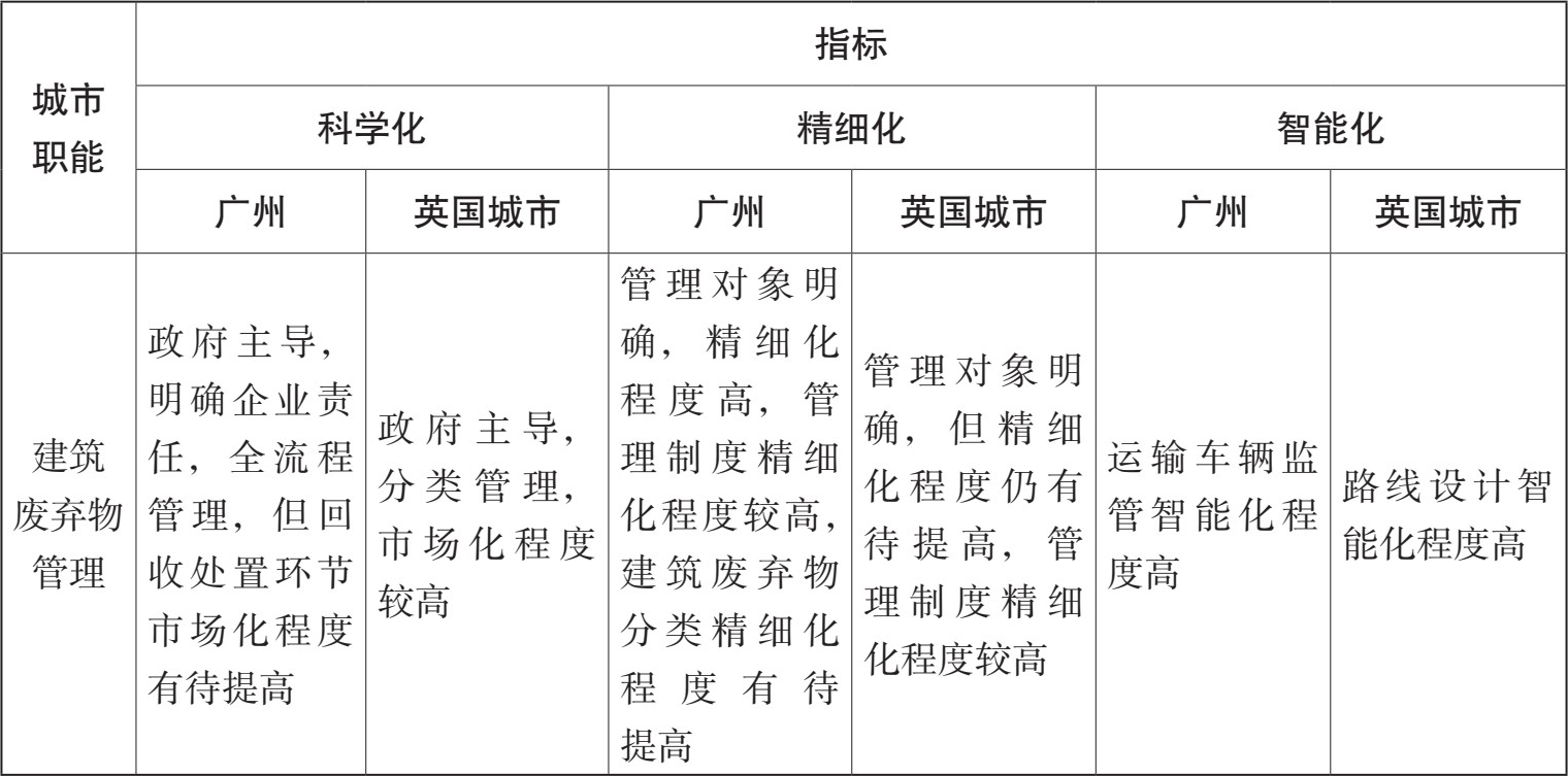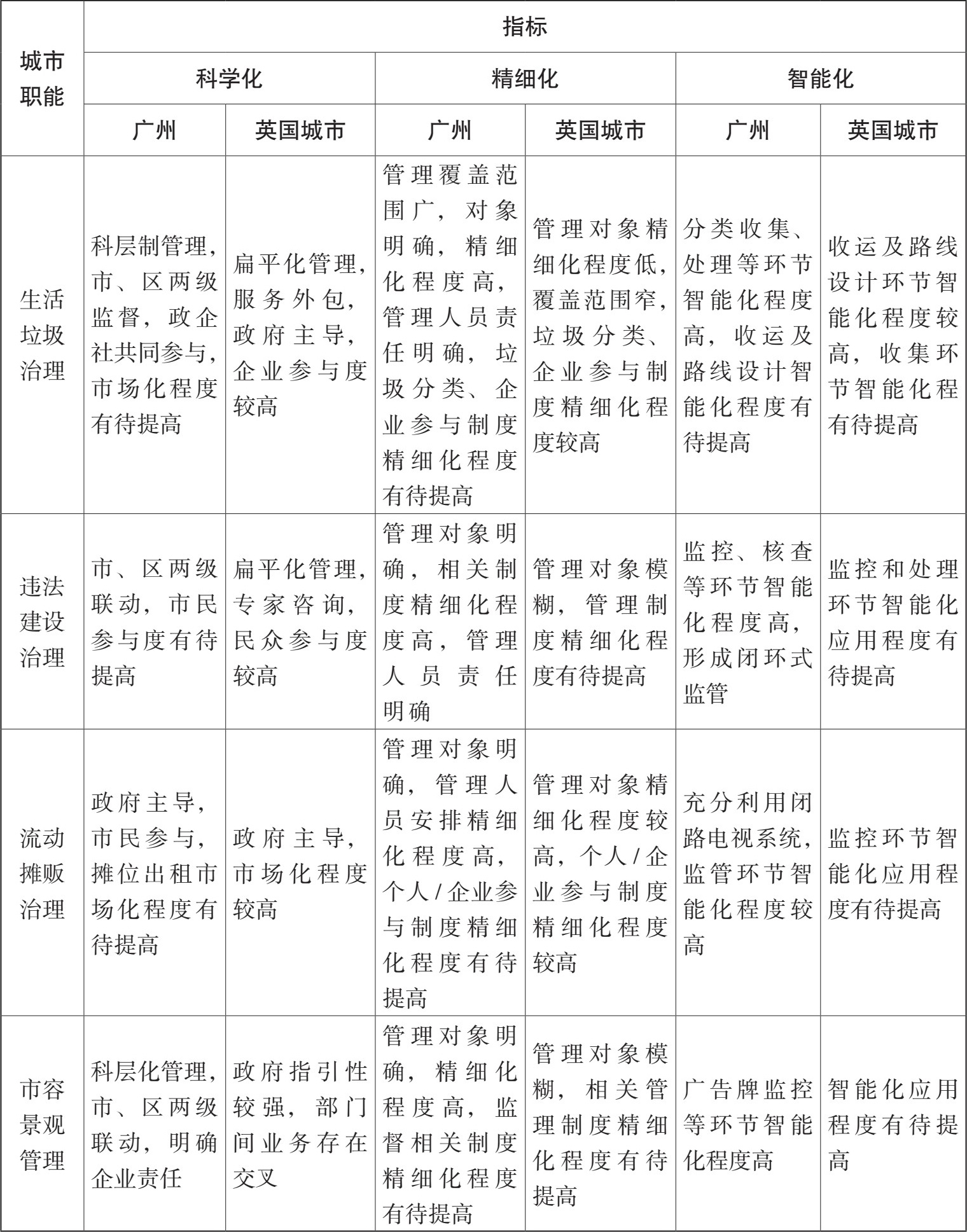 本部分就城市治理的科学化、精细化和智能化三个维度,对广州和英国城市的管理进行系统对比。