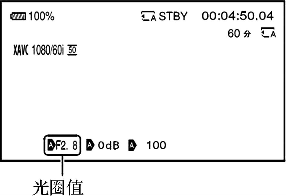 ②按IRIS AUTO/MAN按钮C将光圈设定为手动。光圈值旁的