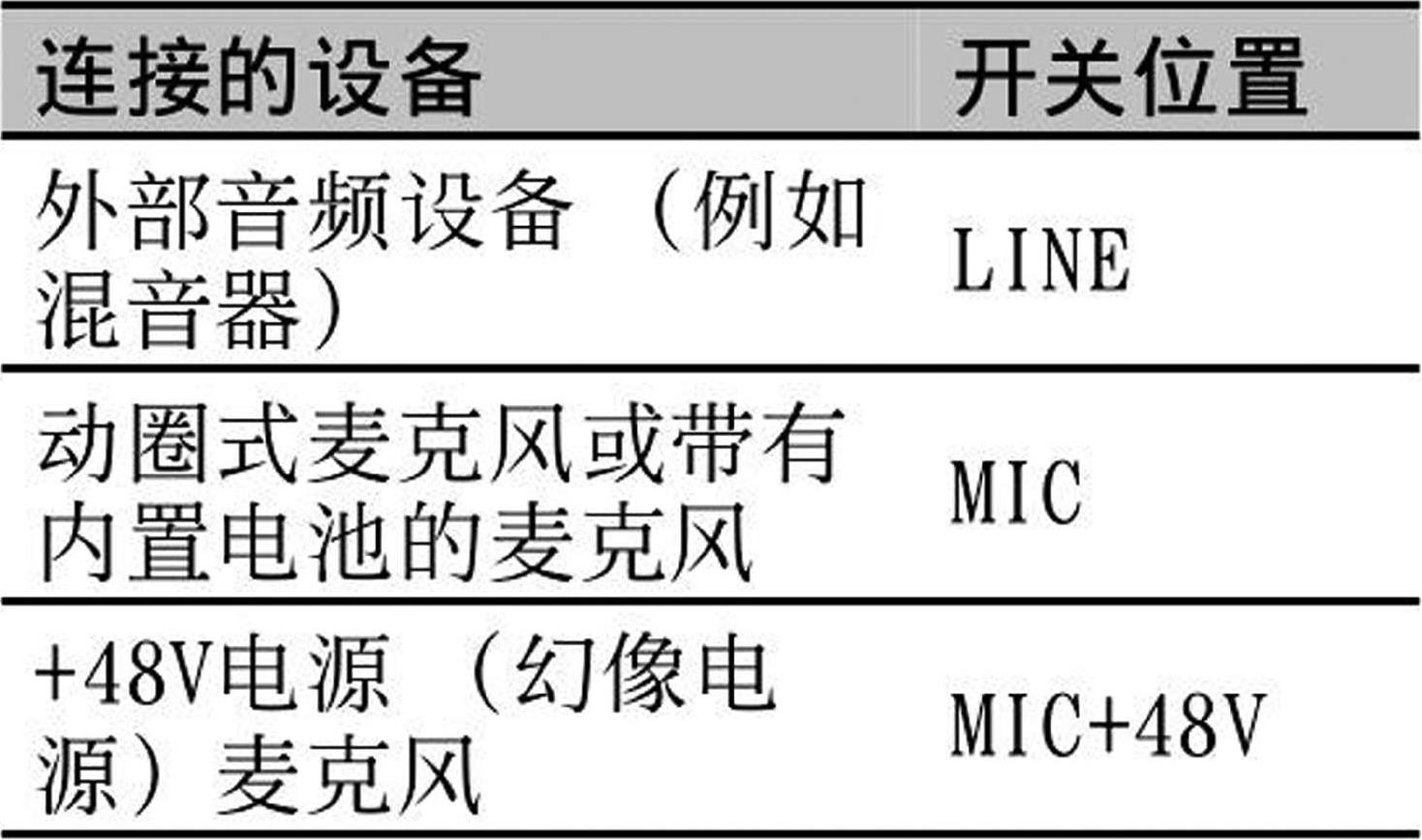 ·要使用麦克风进行录制,请选择“MIC”或“MIC+48V”。