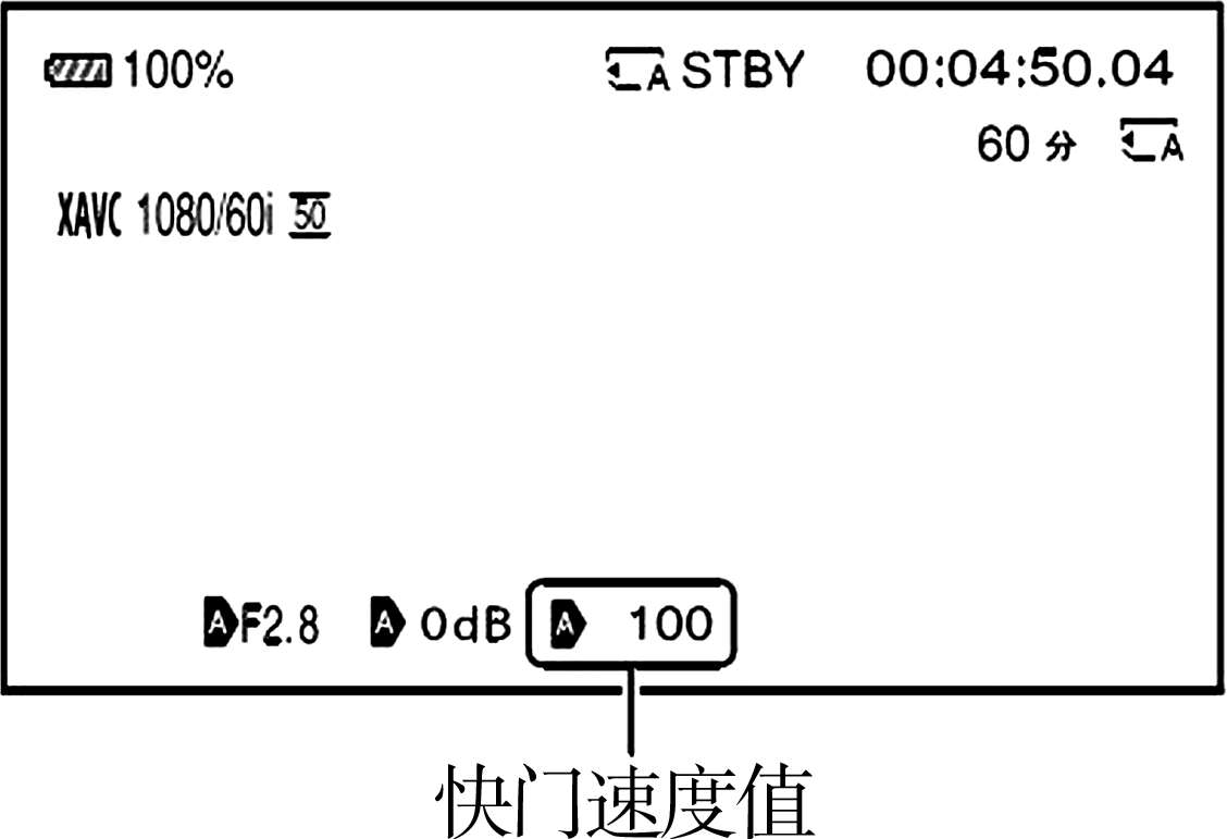 ·当选择[60i]时:可以在1/8到1/10 000之间(使用24P拍摄时为1/6到1/10 000)选择;