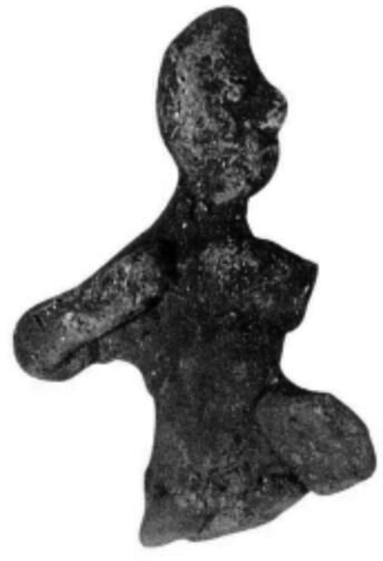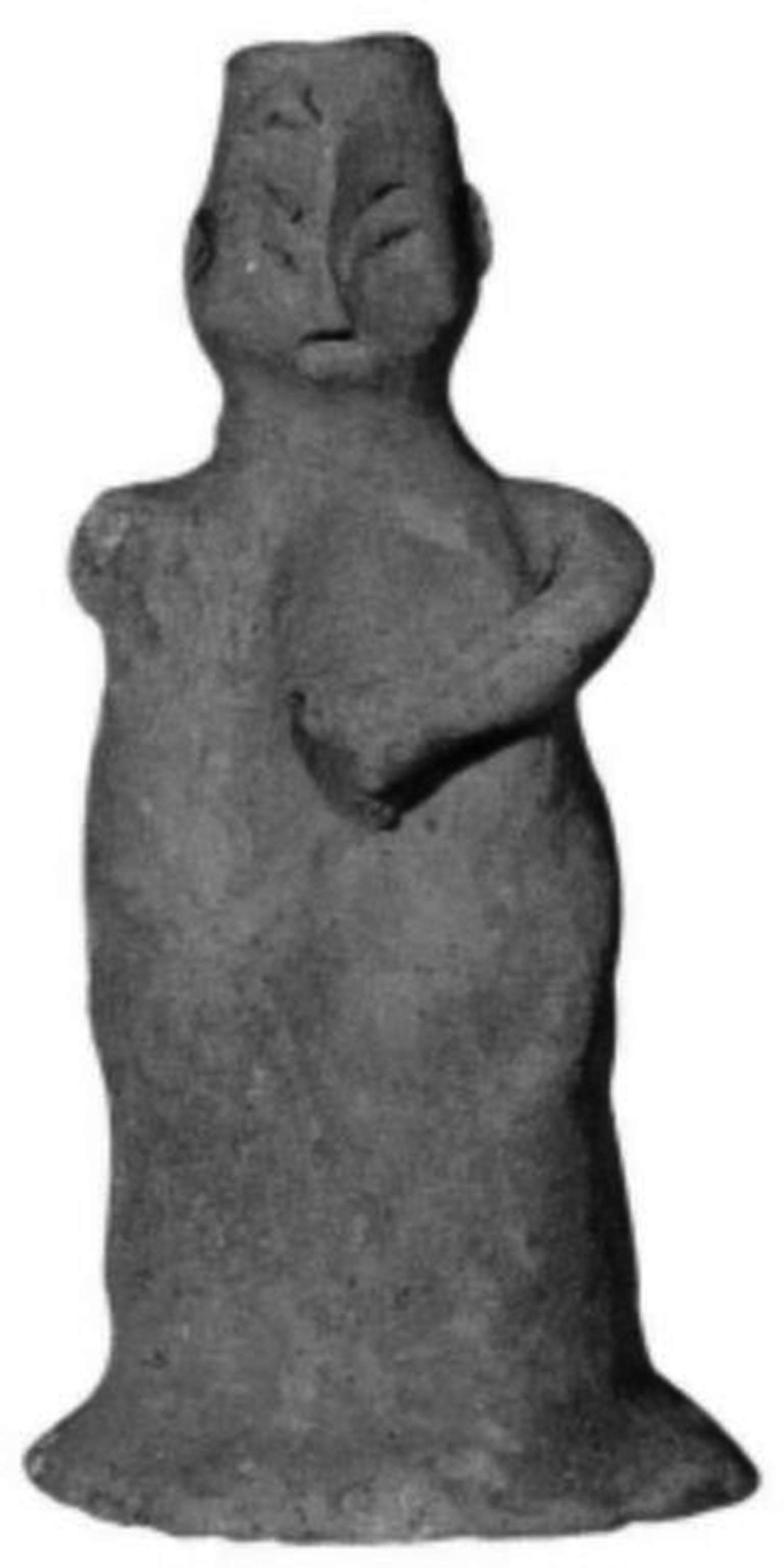图3 1990年在韶关南郊东汉墓出土的“陶舞俑”(正面与侧面)