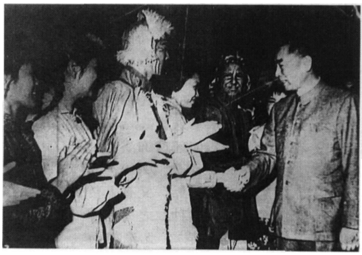 图46 1963 年12 月,周恩来总理在观看大型粤北采茶戏《血榜恨》后接见演员