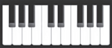 模块二:键盘图。键盘图由 两种钢琴黑白键构成,每个调的音阶、琶音与和弦都用一组完整的八度键盘(主音到主音)图 (2+3+2)或 (3+2+3)模式表示,键盘上标有左右手指法,实际演奏中需相隔一个八度。