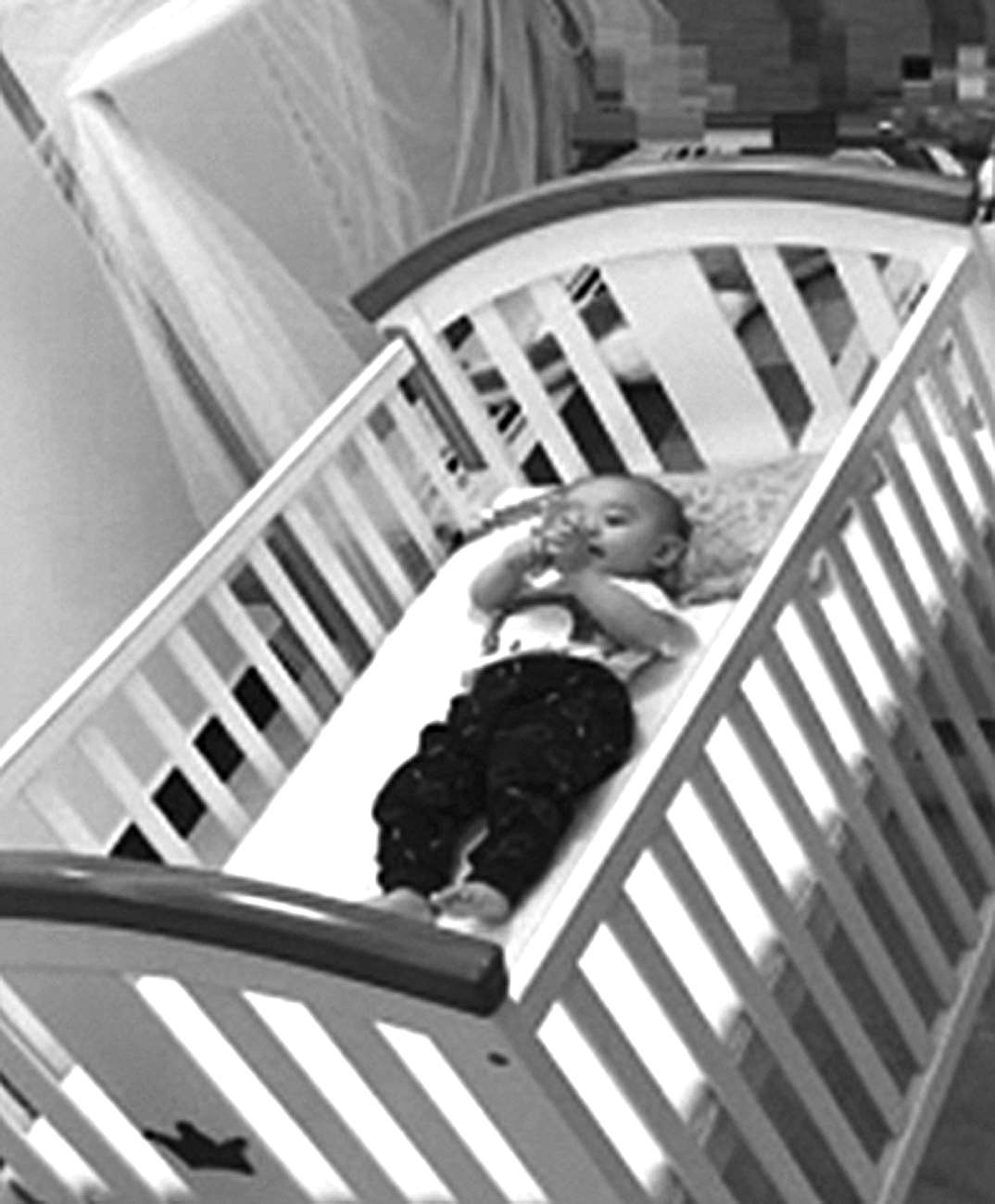 (1)分床睡,新生儿睡婴儿床,不与父母同睡一张床(见图3-1)。