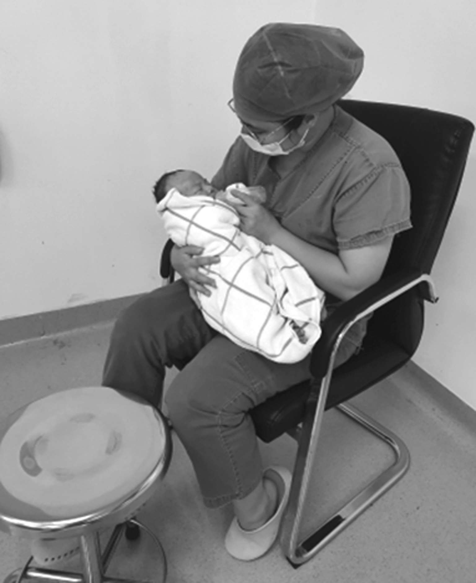(3)喂奶时的互动交流。给新生儿喂配方奶时,母亲应注意与新生儿进行互动交流,平静而柔和,传递给新生儿放松、舒适且愉快的感觉,如和新生儿轻声说话,与其有目光交流。