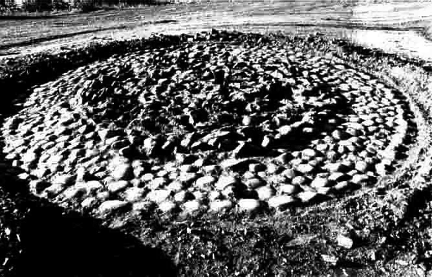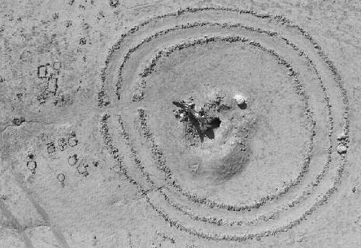 其中一处遗址的中心是直径达50米的圆锥形土石堆(顶部有塌陷坑),中层为直径70.7米的“C”形石圈,外层是直径100米的石圈。