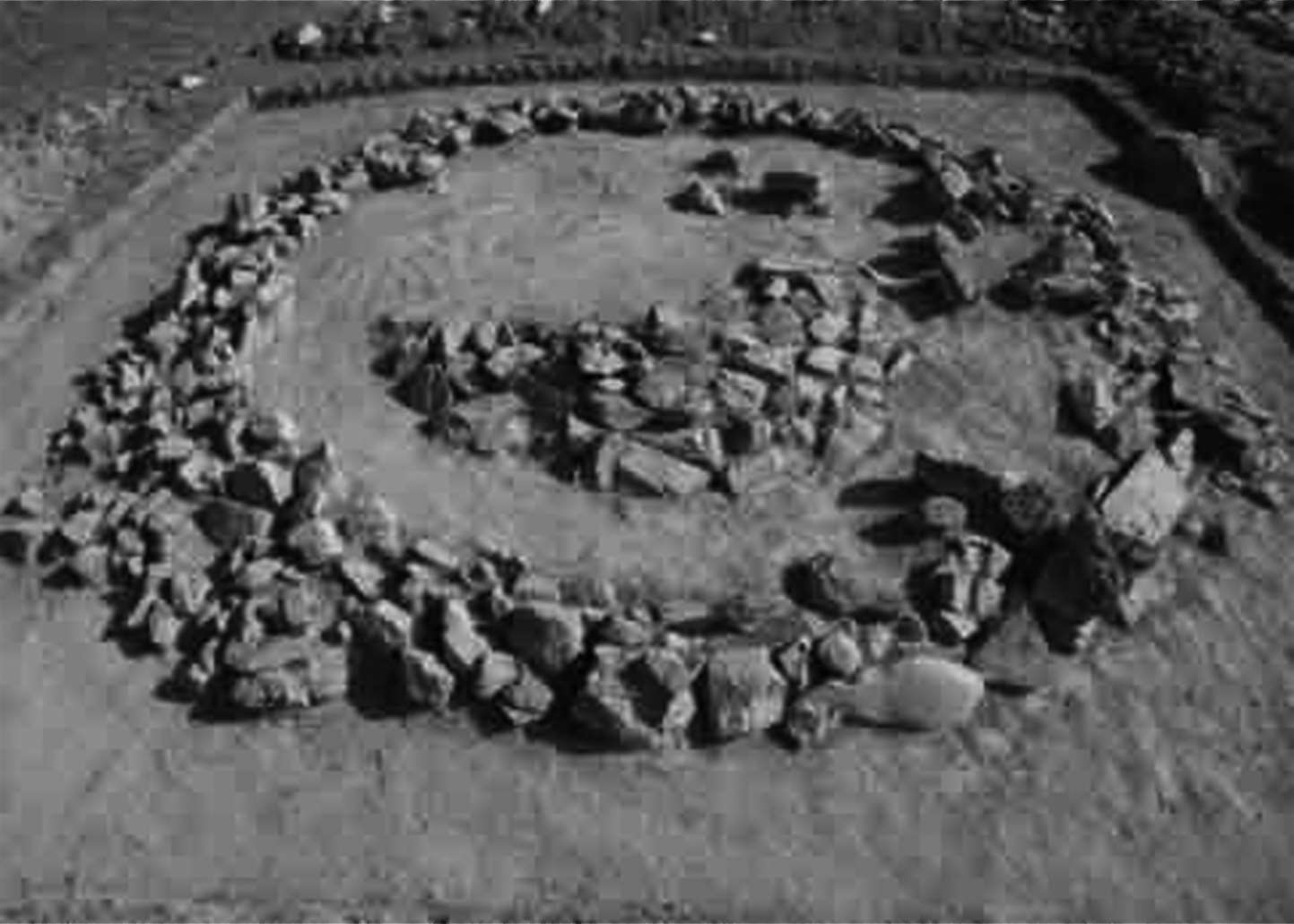 图5 尼勒克县吉林台水库库区“〇”形祭坛遗址(新疆维吾尔自治区文物考古研究所:《新疆考古十年间》,《中国文化遗产》2007年第1期)