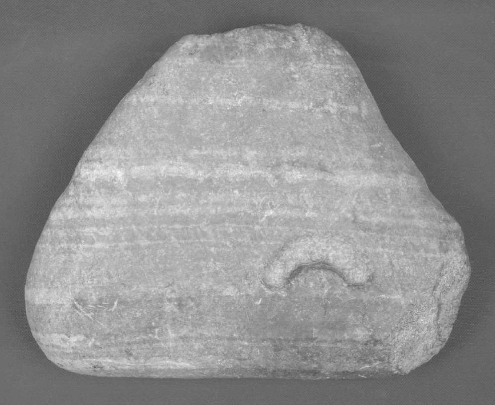 ”形图案还见于沙雅县博物馆藏塔什墩村出土的刻石(见图11)、木垒县菜子沟古墓所出石印之印匣正面及玛纳斯马桥子故城南晚清墓地所出石印之印匣背面,而图案相同的石印、陶印在吉木萨尔县、阜康市及呼图壁县也均有发现(见图12)。特克斯县铁里氏盖的链状墓中还曾出土4件红铜铸制的月牙形铜饰。中天山北麓地区是乌古斯部族的崛起之地,“〇”形、“