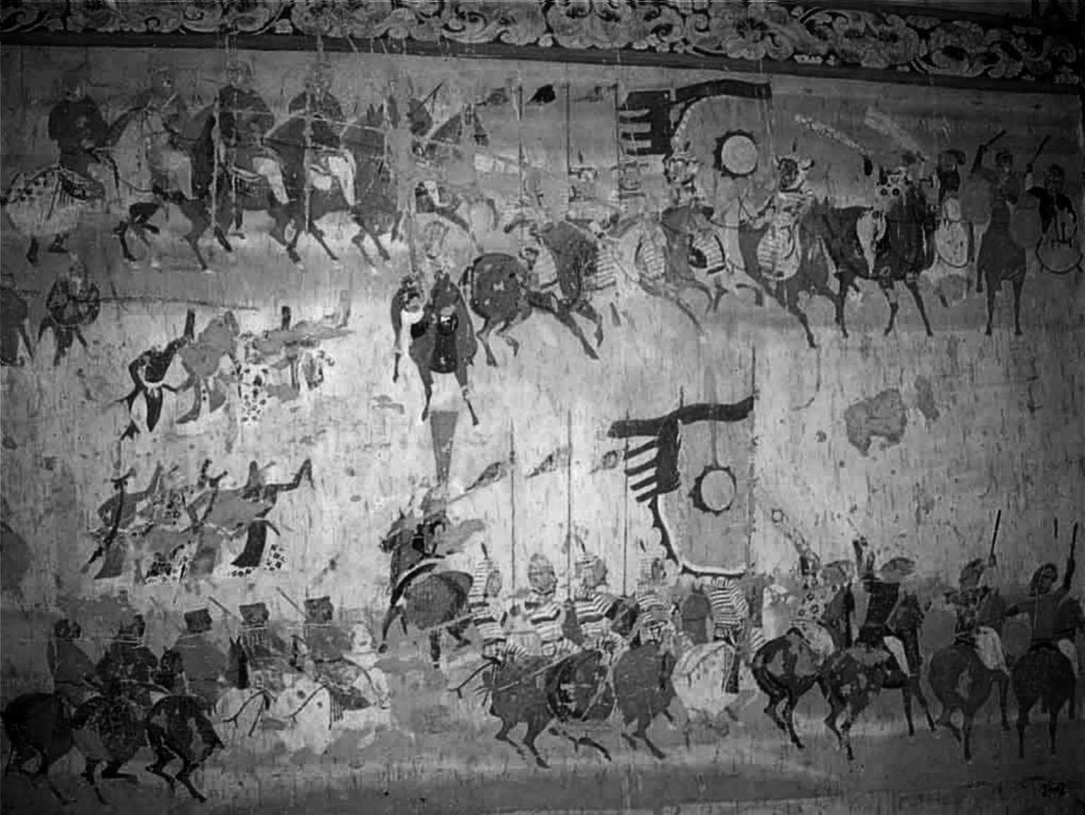 图10莫高窟第156窟张议潮出行图回鹘军队壁画(李树若摄)