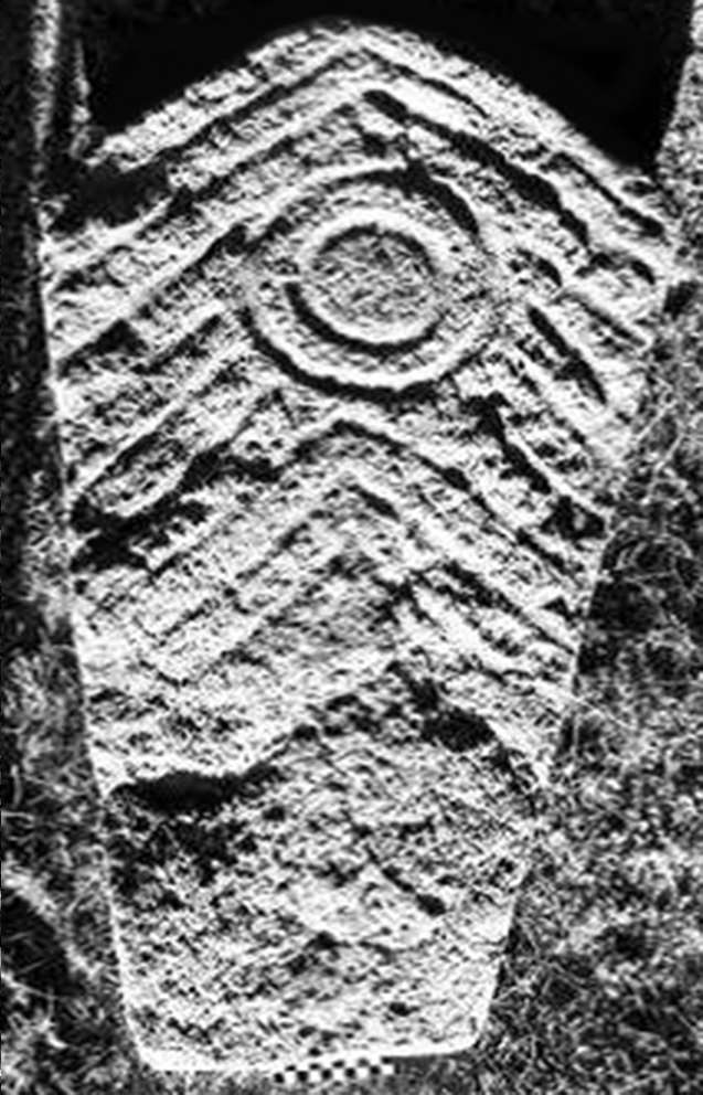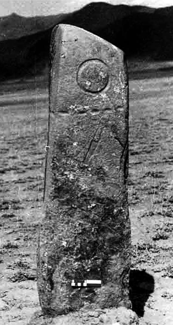 图8 青河县塔斯特萨依“〇”形图案鹿石(新疆维吾尔自治区文物事业管理局等主编:《新疆文物古迹大观》,新疆美术摄影出版社,1997年,第327页)