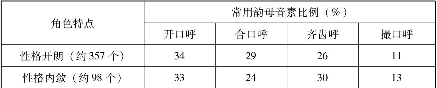 根据角色性格的对比,我们在182部普通话类影视作品的语料中发现:不同性格的角色在对白的音素选择上存在较为细微的差别,如表 1所示。