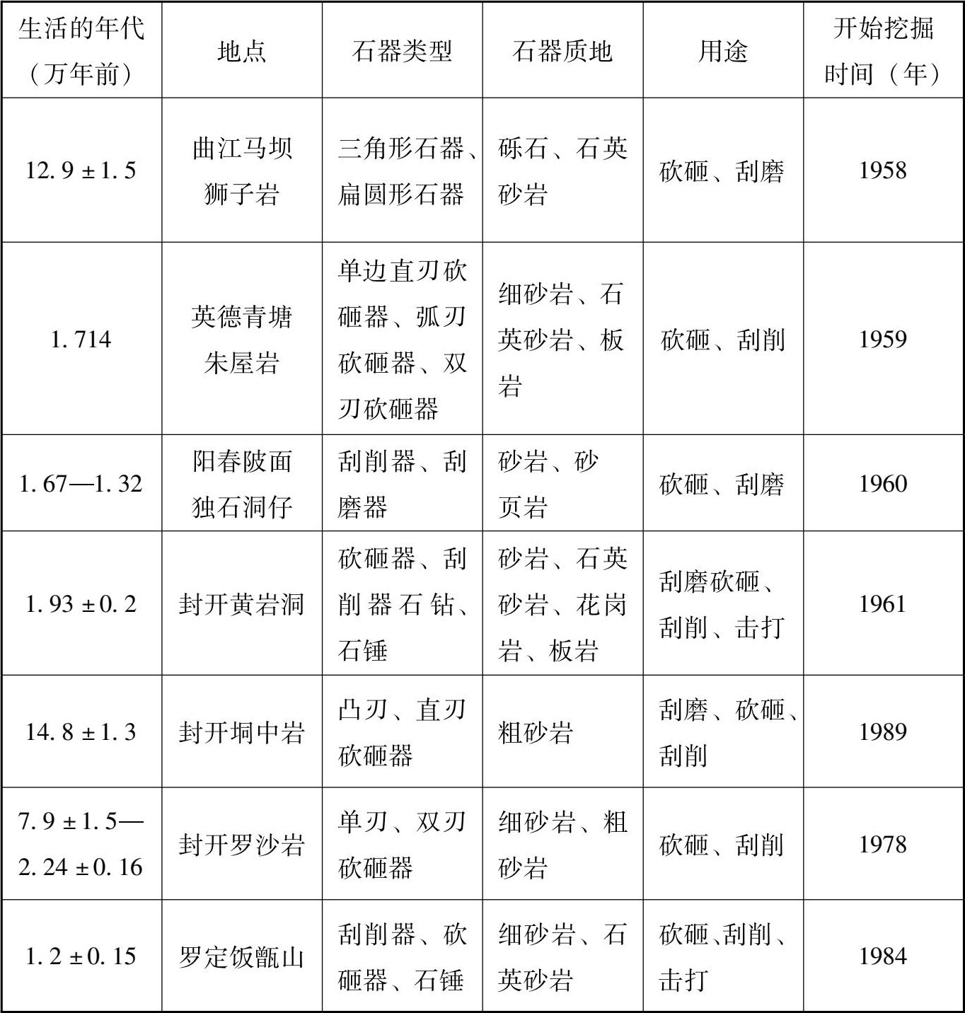 表1-1 狮子岩马坝人遗址及周边地区洞穴石器情况