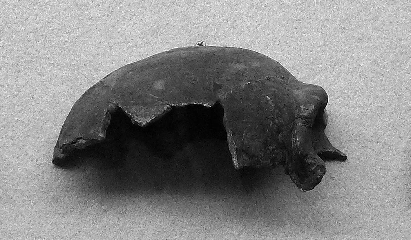 1958年9月14—18 日,中国科学院古脊椎动物研究所专家裴文中、吴汝康、周明镇等,广东省文物管理委员会专家商承祚、麦英豪,以及广东省博物馆、中山大学、广州市文物管理委员会等单位的专家、教授和考古工作者共60多人抵达马坝,在对狮子岩发现的古人类和古动物化石进行认真仔细的复查后,确认形似乌龟壳的人类头骨化石是古人类头骨化石(图1-9)
