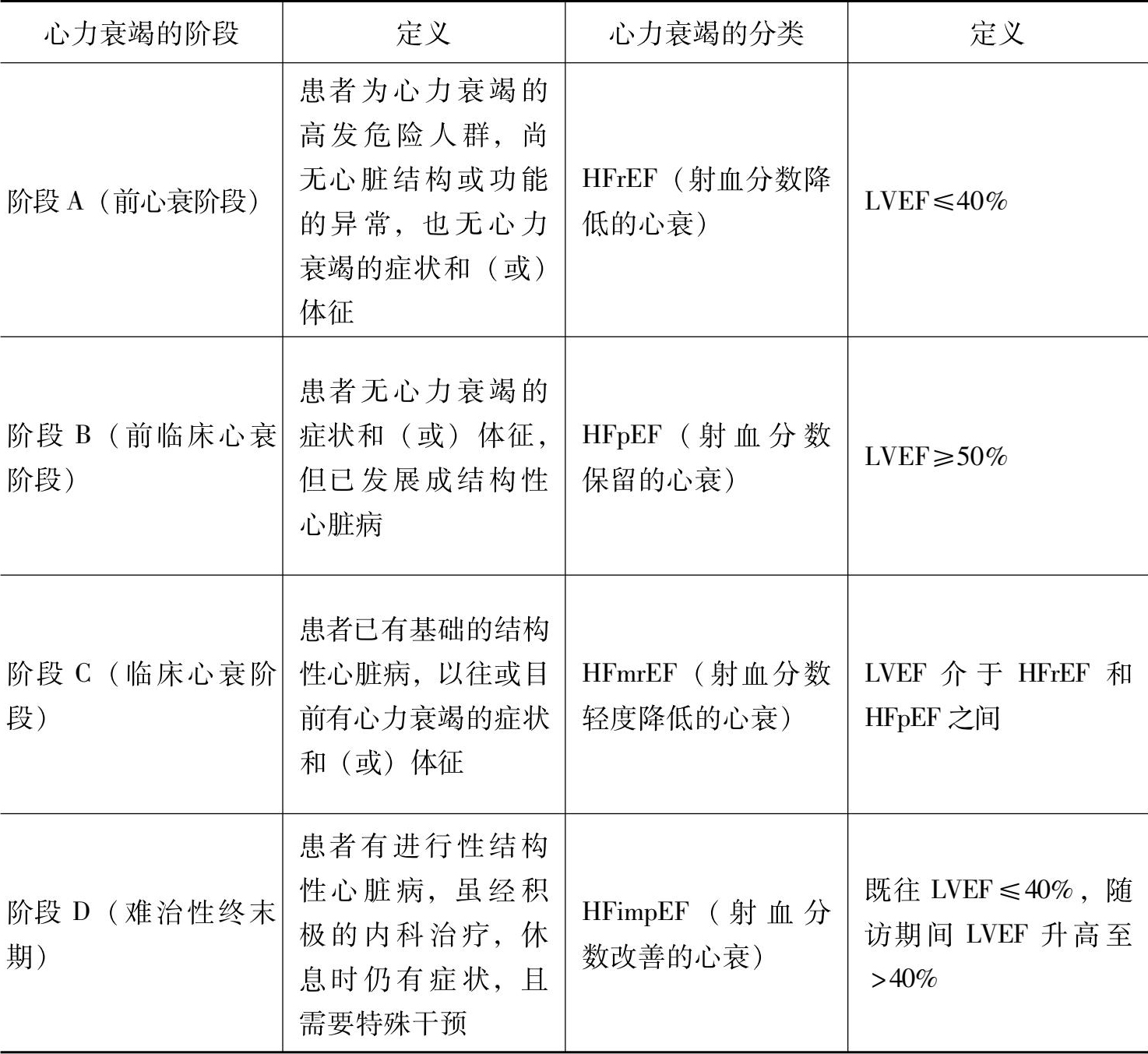 表2-1 心力衰竭的阶段和分类