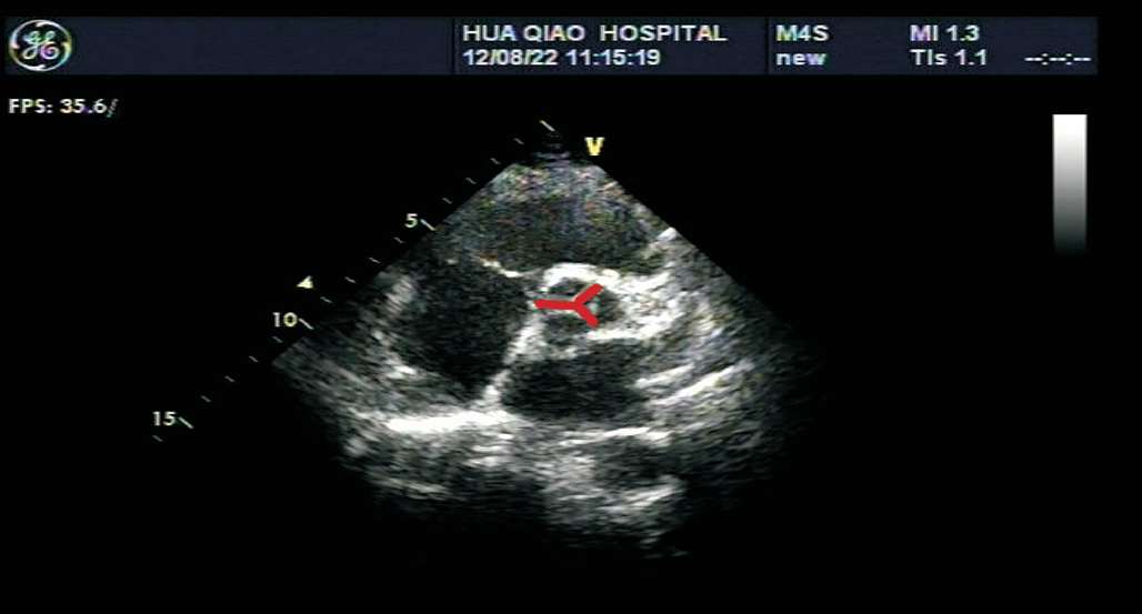 图1-28 心底大动脉短轴切面主动脉瓣呈三瓣叶,舒张期关闭为“Y”形