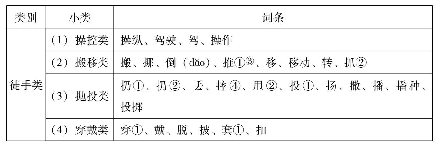 不同学者对手部动词的分类不尽相同。李葆嘉