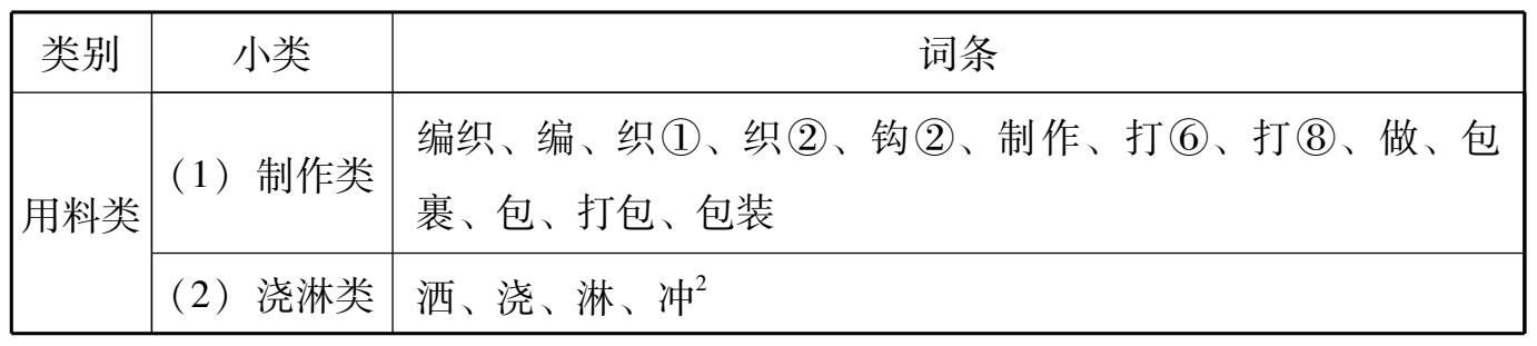 从意义的角度将手部单音节词分成打击类、扔弃类、牵引类等30个小类。我们在前人的基础上将手部动词分为徒手类、持具类、徒手-持具类、用料类四大类,每一大类下细分各个小类。