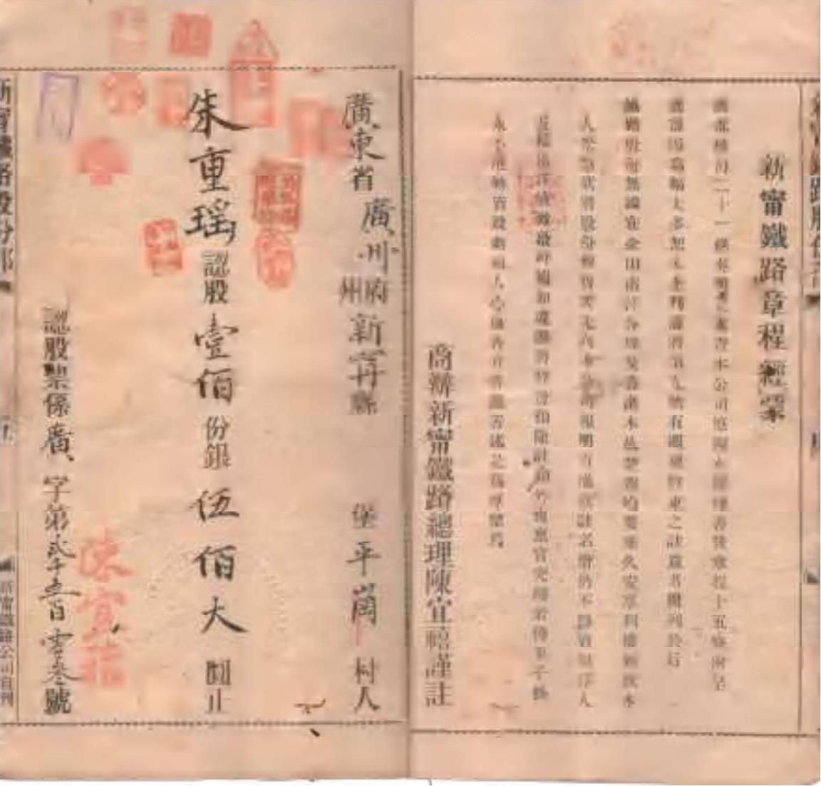 1909年朱重瑶的商办广东新宁铁路股份簿