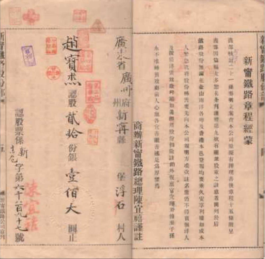 1909年赵宝杰的商办广东新宁铁路股份簿
