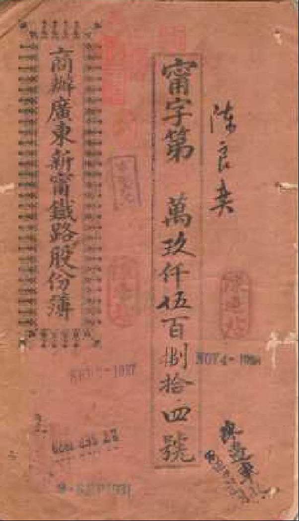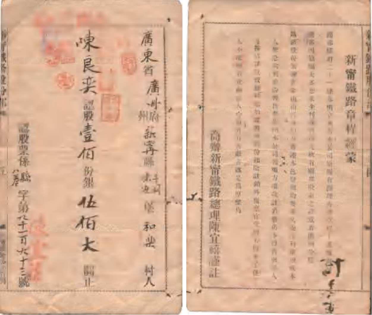 1909年陈良奕的商办广东新宁铁路股份簿