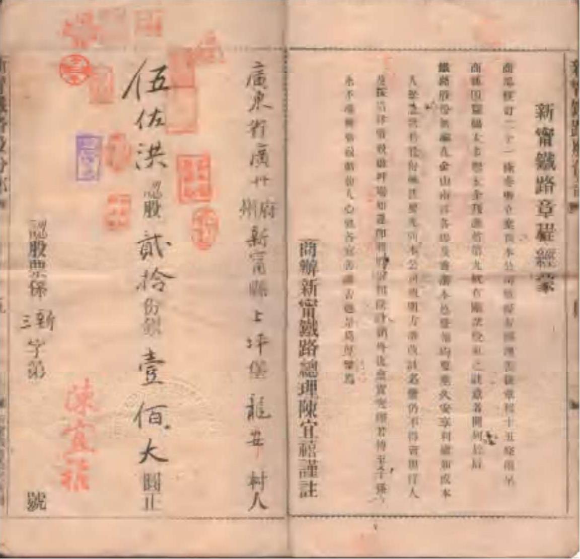 1910年伍佐洪的商办广东新宁铁路股份簿
