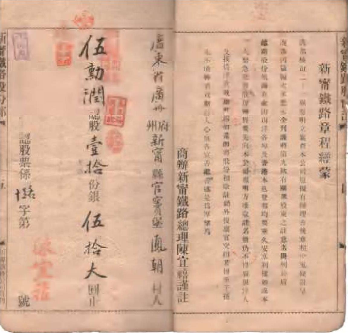 1918年伍勋润的商办广东新宁铁路股份簿