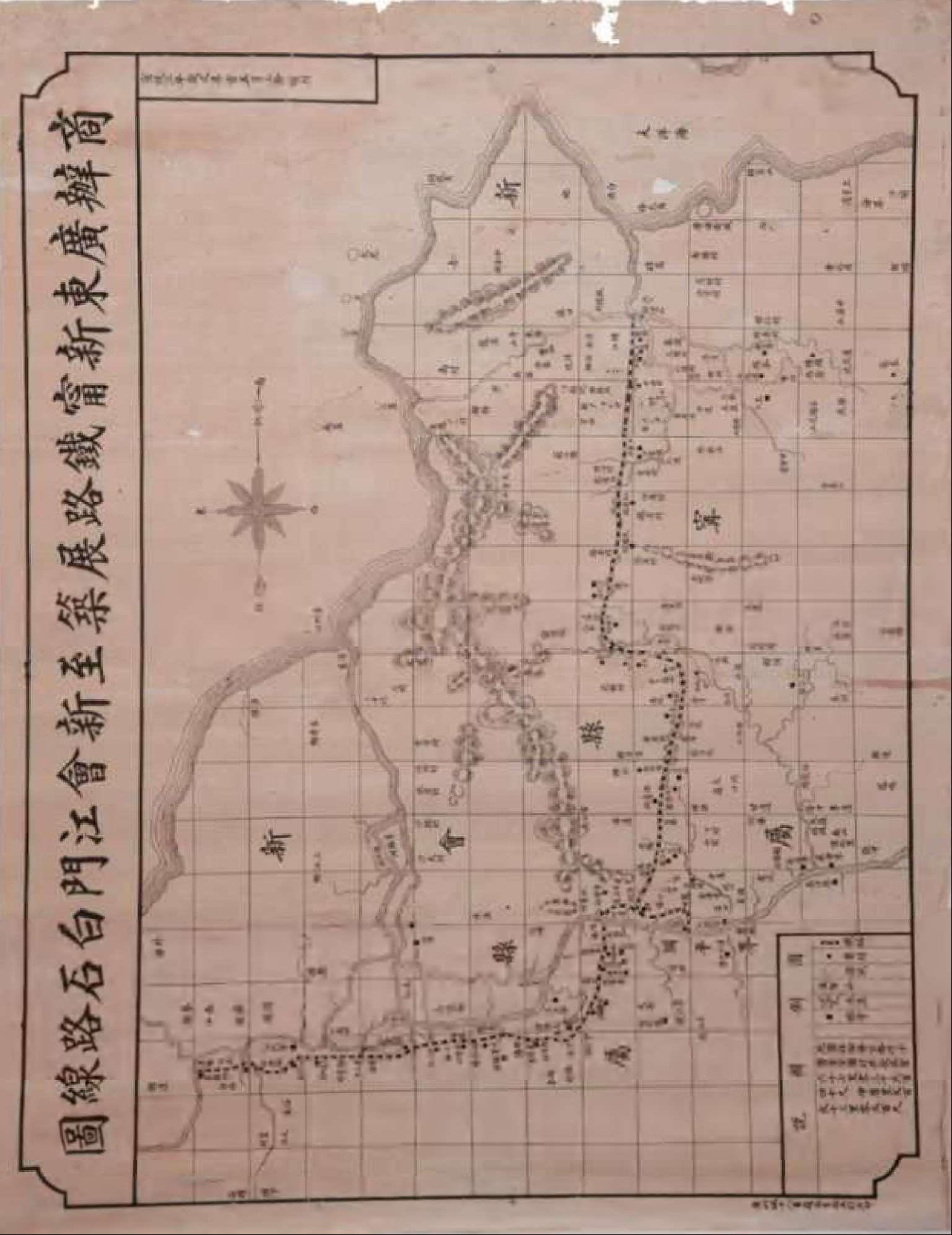 1911年商办广东新宁铁路展筑至新会江门白石路线图