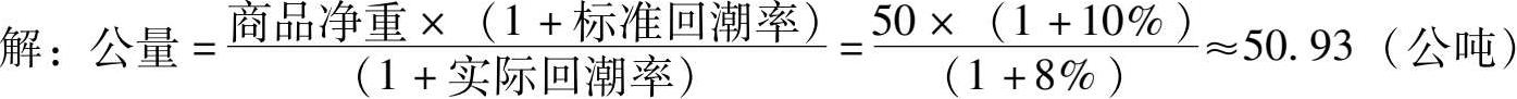 2.公量(Conditioned Weight)是以商品的干净重加上标准的回潮率与干净重的乘积所得出的重量。