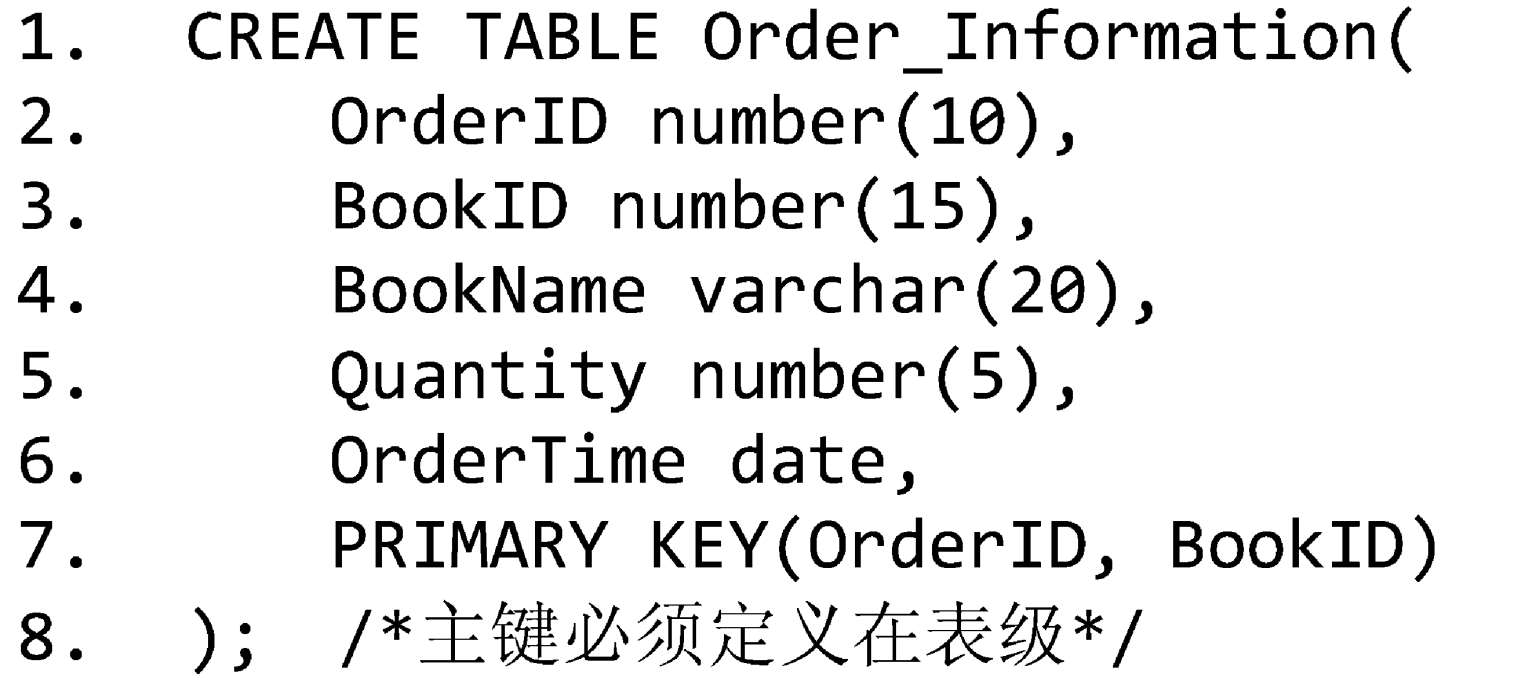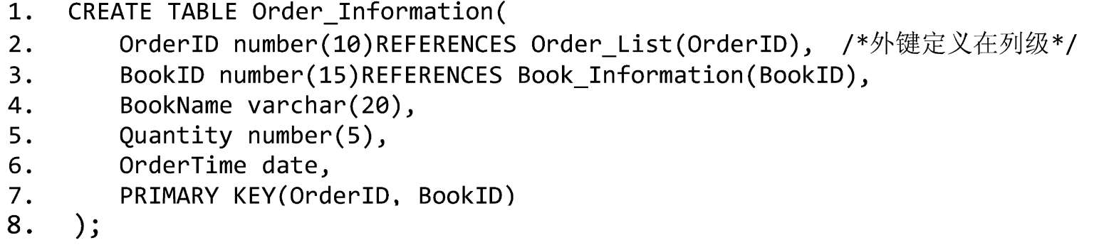 【例2-17】 创建一张订单信息表(Order_ Information),主键为订单号(OrderID)和书籍编号(BookID)。