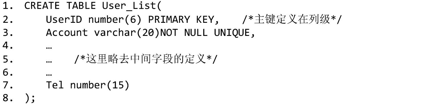 【例2-16】 创建一张用户表(User_List),主键是用户号(UserID)。