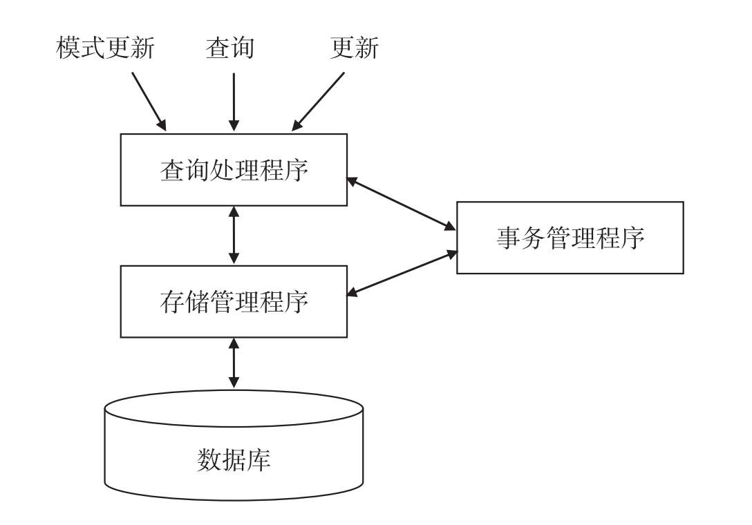 查询处理程序的功能是在接收到一个操作请求后,为其找到一个最优的执行方式,然后向存储管理程序发出命令,使其执行。存储管理程序的功能是从数据库中获得上层想要查询的数据,并根据上层的更新请求更新相应的信息。由此可见,查询处理程序不仅负责查询,也负责发出更新数据或模式的请求。