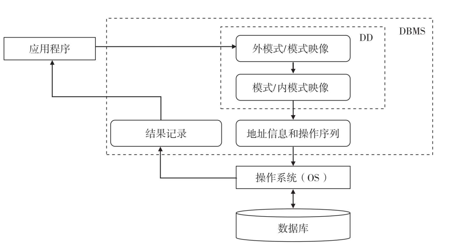 在应用程序运行时,数据库管理系统将开辟一个数据库系统缓冲区,用于数据的传输和格式的转换。数据库系统三层结构的描述放在数据字典(DD)中。