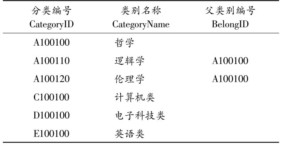 ⑥书籍类别(分类编号,类别名称,父类别编号),关系表如表2-6所示。
