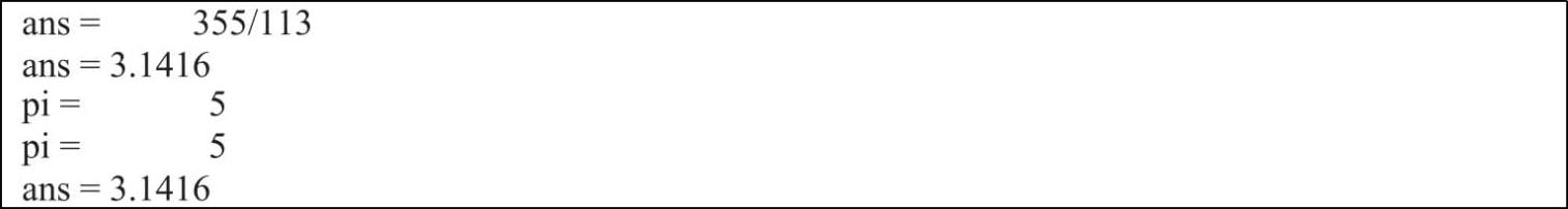(1)常量与变量实例——常量 pi 可通过赋值而改变,见如下程序语句。