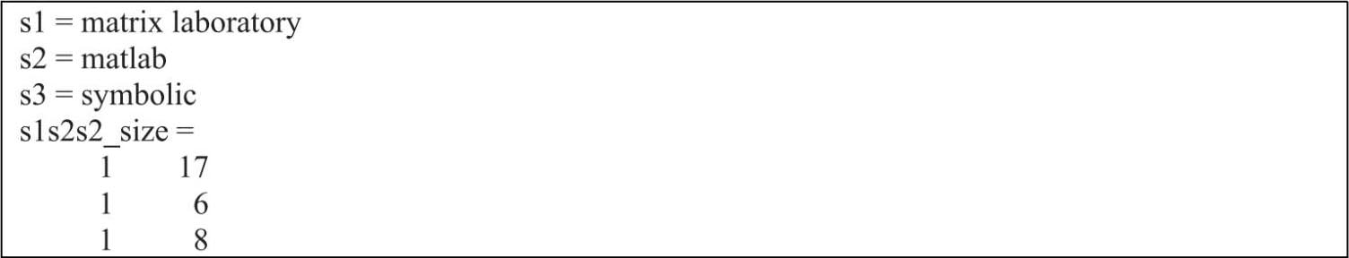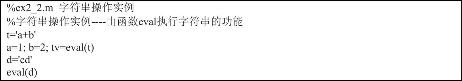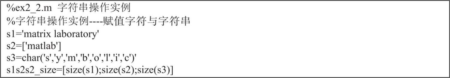 在Matlab命令行窗口运行ex2_2.m的这些语句,得到如下赋值字符与字符串结果。