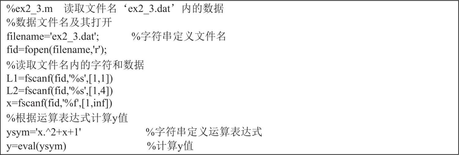 格式化读取文件名“ex2_3.dat”内的数据,编制Matlab程序ex2_3.m如下。