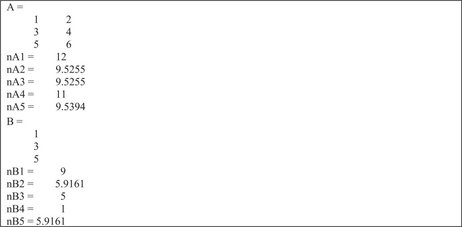 A.norm( A p )返回sum(abs( A ).^ p )^(1 /p ),for 1≤ p ≤∞;