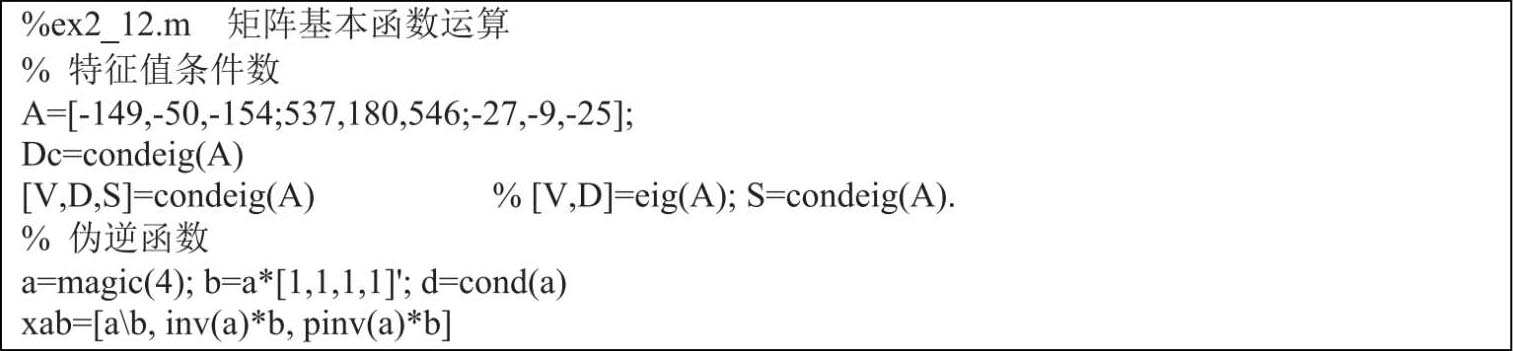 (3)矩阵基本函数运算——特征值条件数和伪逆函数。