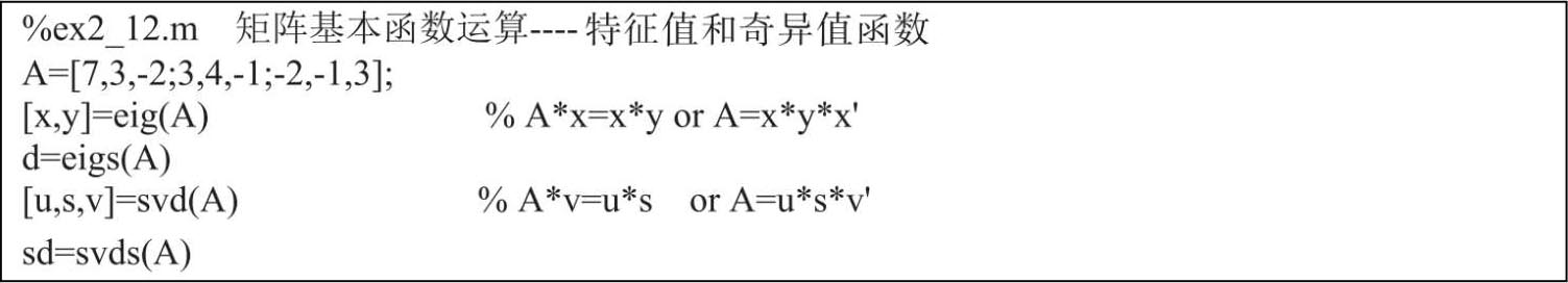 (1)矩阵基本函数运算——特征值和奇异值函数。