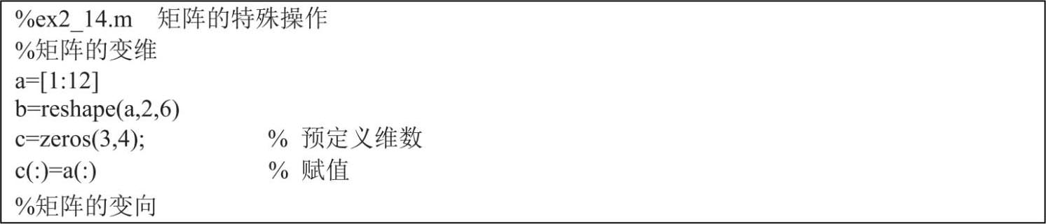运算中常常需要对矩阵进行特殊操作,如矩阵的变维和变向、矩阵的抽取、矩阵的扩维和缩维等。