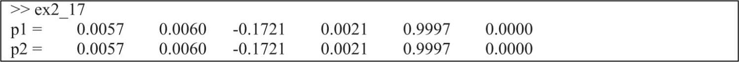 在Matlab命令行窗口运行ex2_17.m程序,得到如下所示的多项式拟合结果。可以看出,两种方法得到的五阶多项式拟合系数
