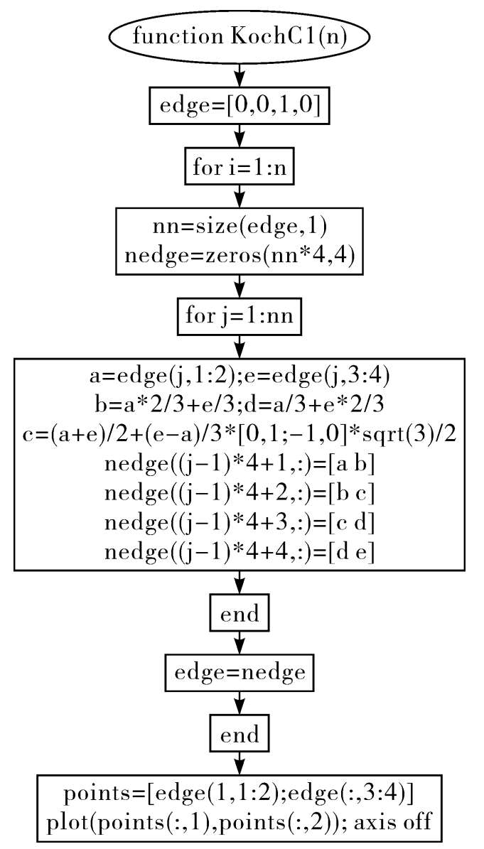 (3)程序流程。由Koch曲线数学模型构建绘出Koch曲线的程序流程,见图 1-7。