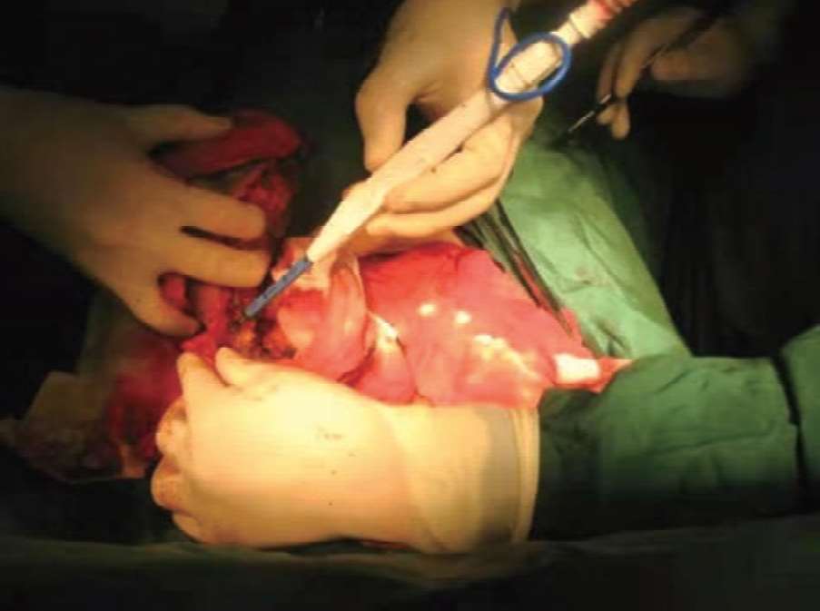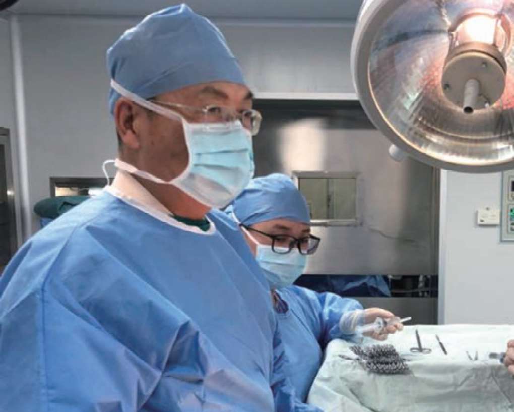 说明:手术进行中的实况,术者认真、仔细地解剖、分离肿瘤。