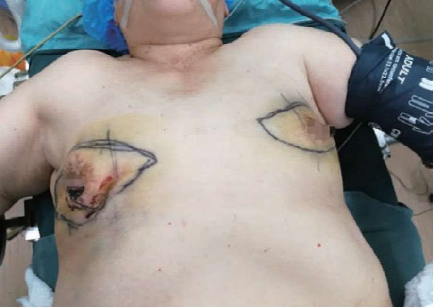 病人于2021年7月19日在气管插管全麻下行双侧乳腺癌改良根治术。