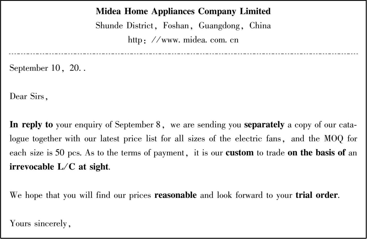 1. In reply____your letter of June 5,we are sending you our latest catalogue.
