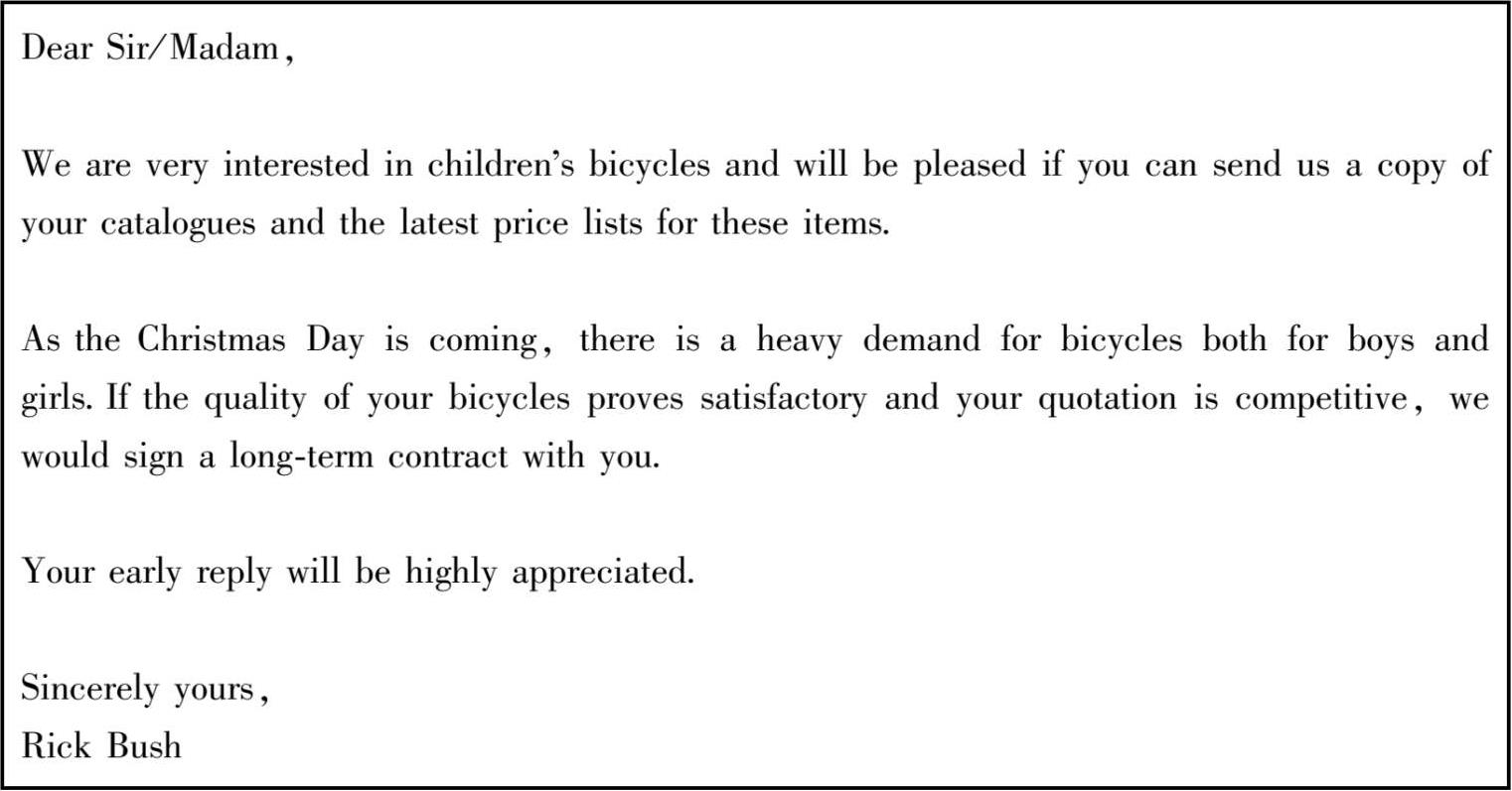 2. The letter we sent last week is an enquiry____mountain bikes.