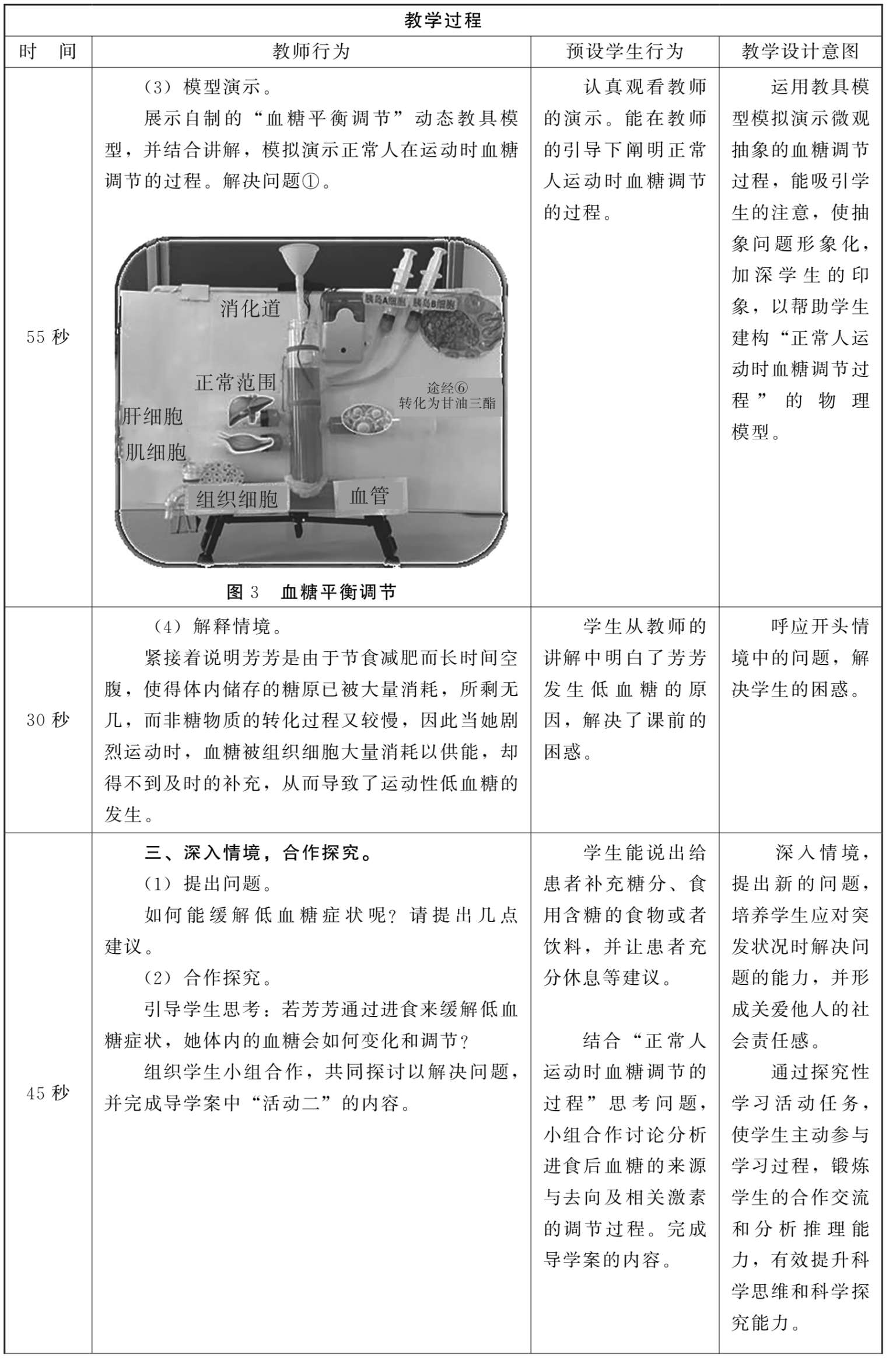 自制教具具有创新性。能够自制“血糖平衡调节”动态教具模型,模拟演示正常人在运动时血糖调节的过程。