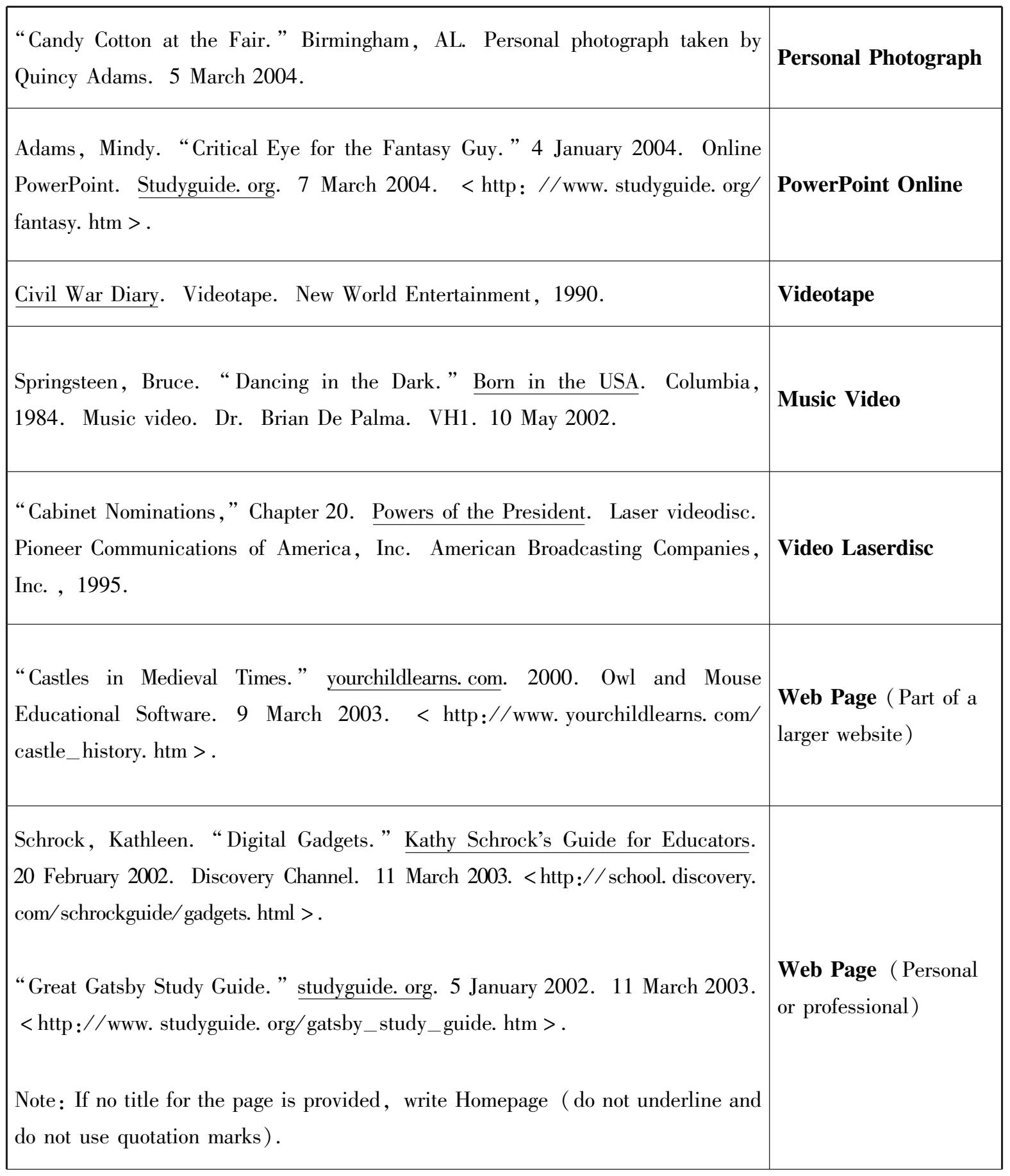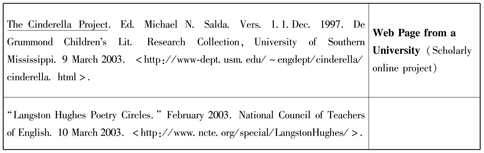 (3)直接引用的材料应该在所引材料的后面加括号,括号里面注明引文作者的姓(无须注出全名)和引文出处的页码,比如:(Sewell 43)。引文作者的姓与页码之间空出一格,不需要加逗号,也不需要在页码前面加“p.”之类的缩写。但APA格式的引文要求有所不同,如果在论文中提到了作者的姓名,那么,就应该在作者的姓名全称之后,用圆括号将出版物的年代写出,引文结束之后,在圆括号里列出引文的页码,页码前要写上“p.”或“pp.”之类的缩写。如果论文里没有提到引文的作者,就应该将引文作者的名字(First Name)、出版年代、引文页码三项列在引文之后的圆括号里。如: