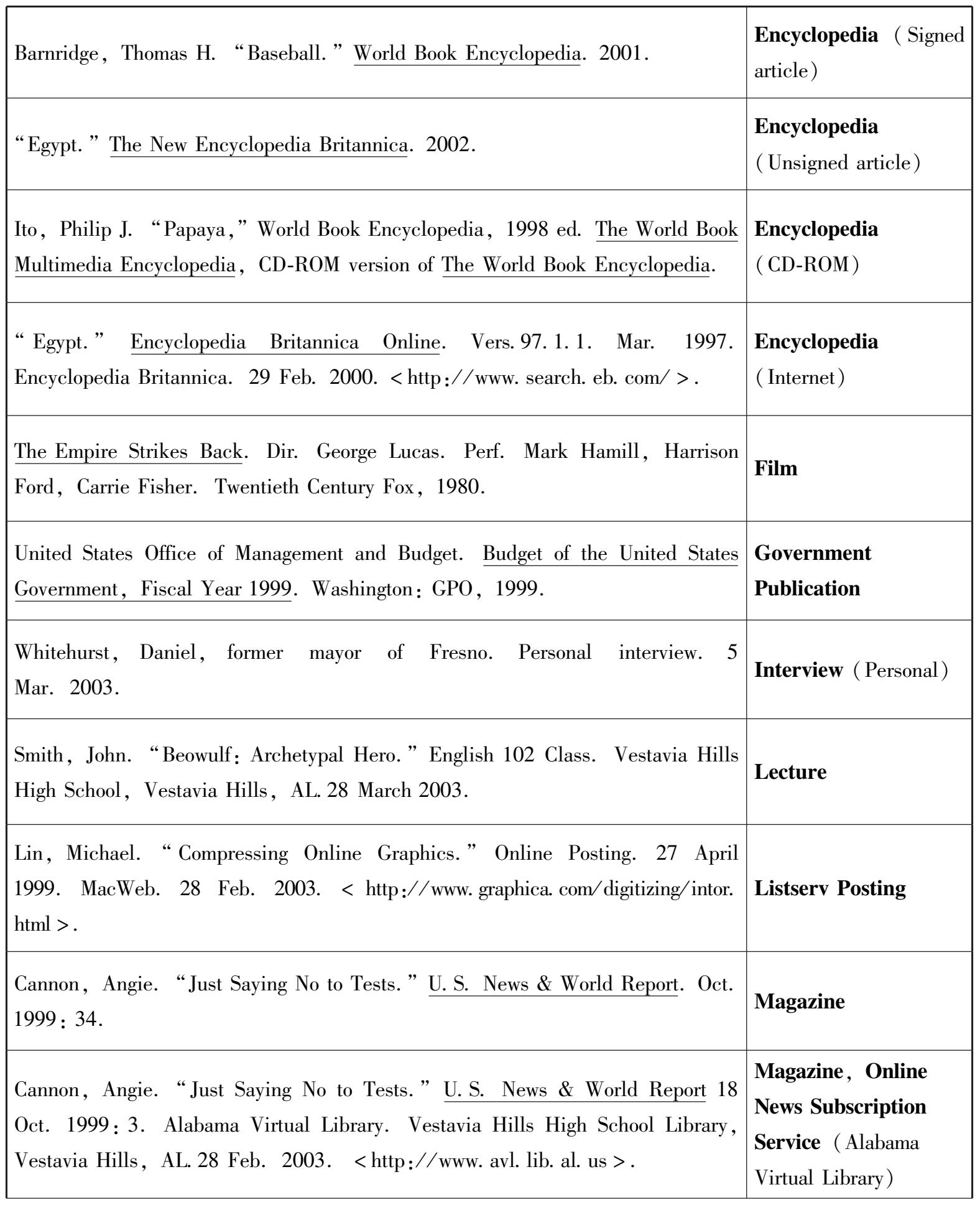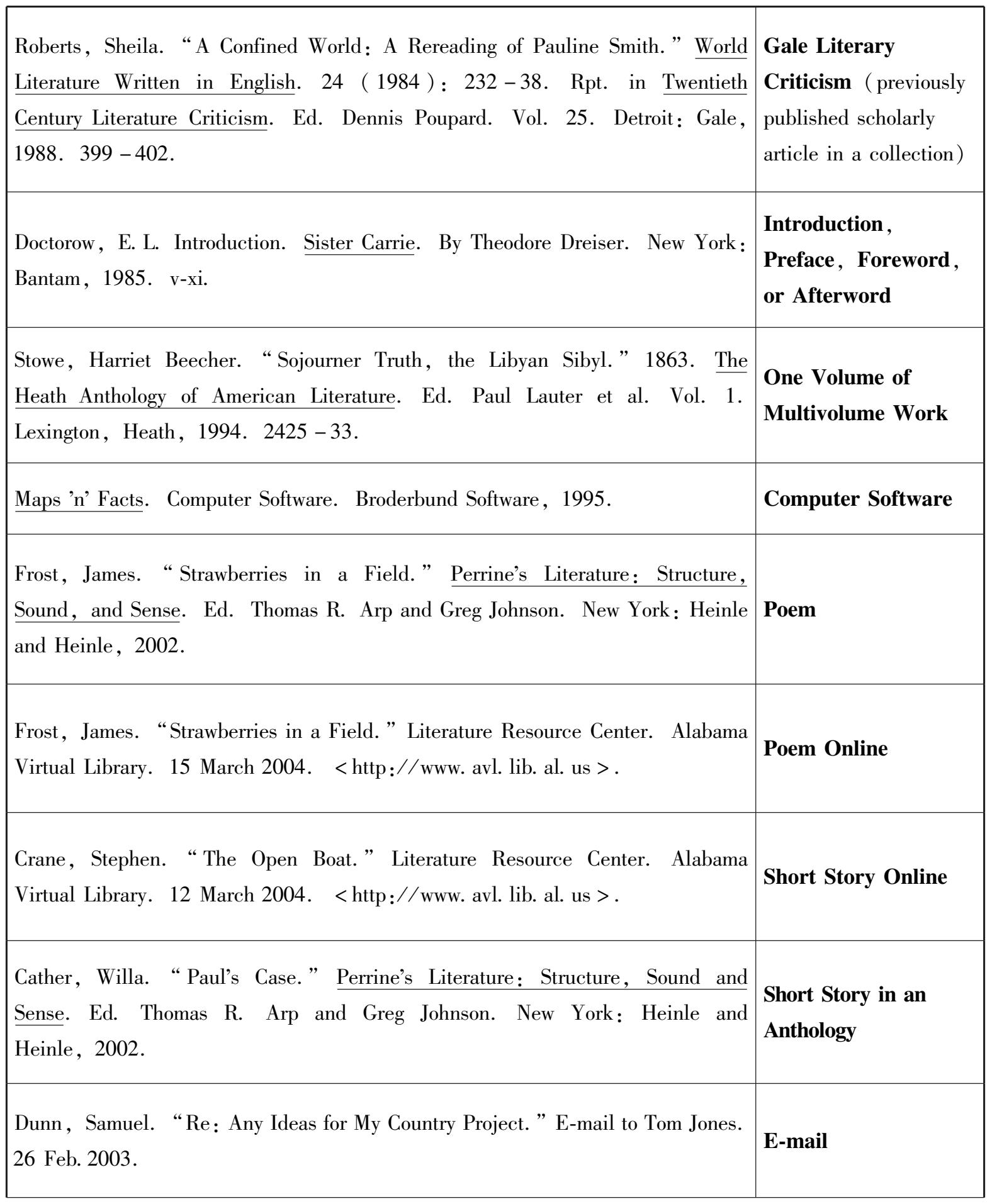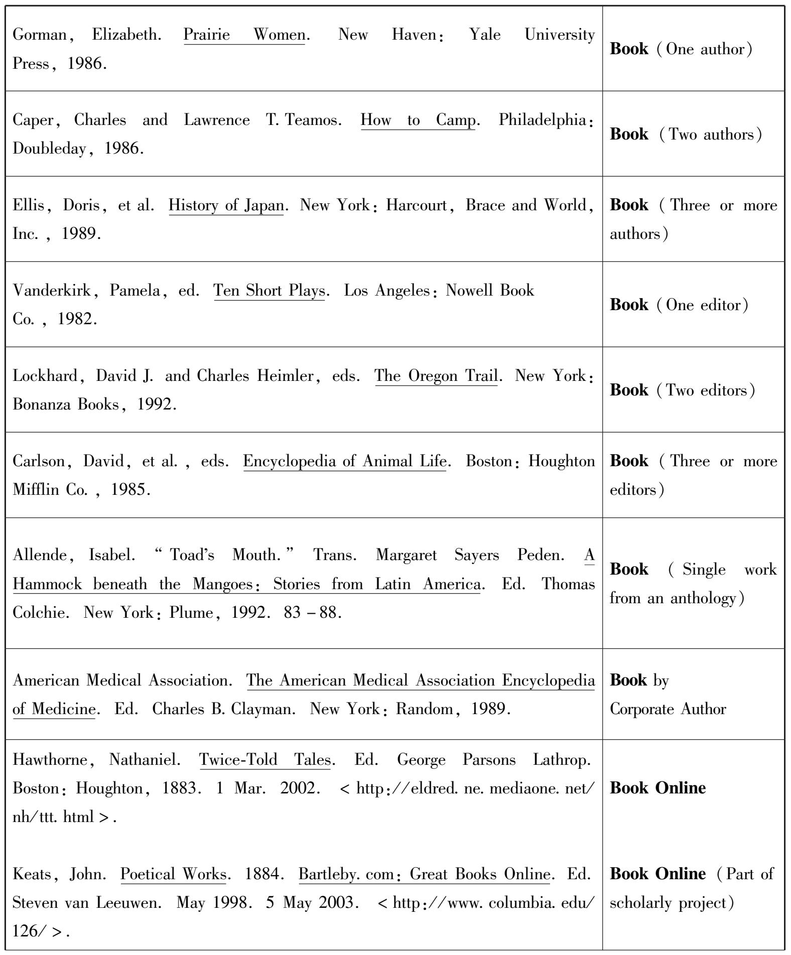 (2)书名:西文书名加下划线或采用斜体,中文书名则用“《》”表示。标明图书版次,英文用一个序数词和英语缩写词“ed.”表示,中文图书则直接写上图书版次。